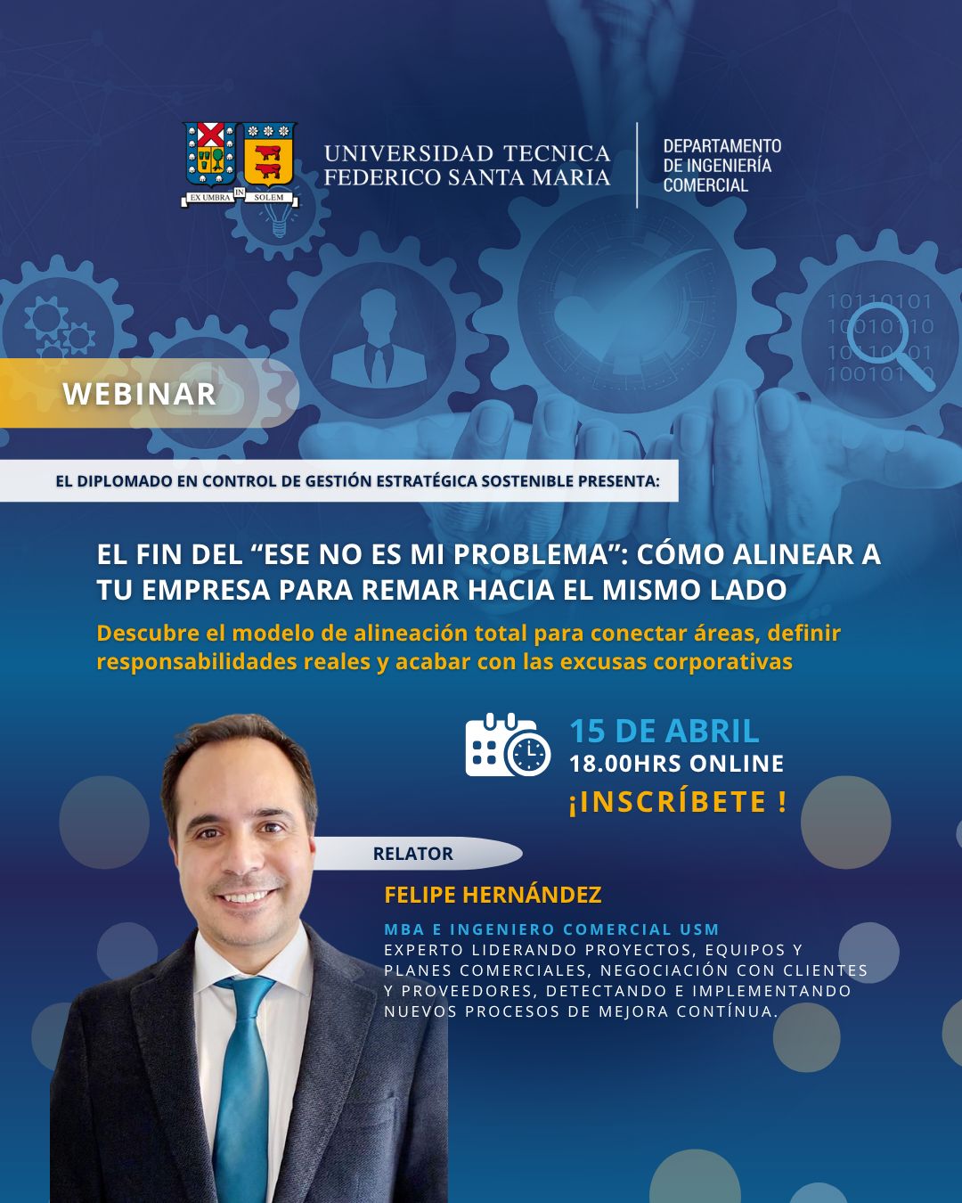 Te invitamos a un nuevo webinar del Diplomado en Control de Gestión Estratégica Sostenible de la UTFSM, donde abordaremos cómo implementar un modelo de alineación total.